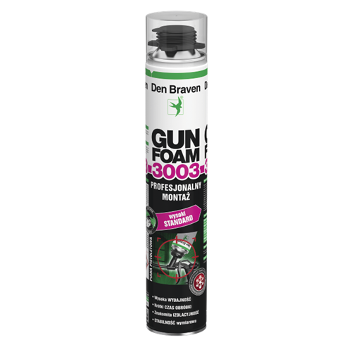 Den Braven Gun Foam 3003 to jednoskładnikowa, poliuretanowa piana pistoletowa, do profesjonalnego montażu okien i drzwi.