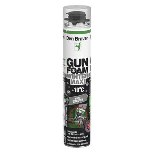 Den Braven Gun Foam Winter to jednoskładnikowa, poliuretanowa piana pistoletowa, o obniżonym przyroście, do zastosowań w sezonie zimowym.