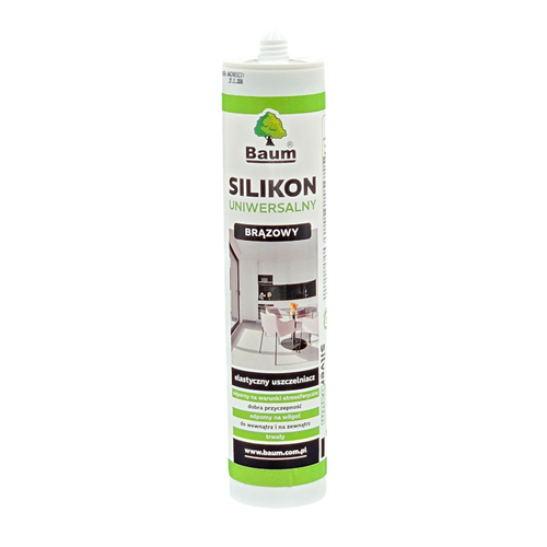 BAUM . Silikon Uniwersalny to uniwersalny, jednoskładnikowy, trwale elastyczny silikonowy kit uszczelniający z octowym systemem utwardzania, przeznaczony do uszczelnień budowlanych.