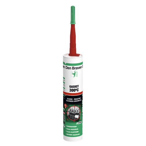 Den Braven Gasket + 300°C to jednoskładnikowy, trwale elastyczny silikonowy kit uszczelniający z octowym systemem utwardzania, przeznaczony do uszczelniania połączeń wystawionych na działanie temperatury do + 300°C.