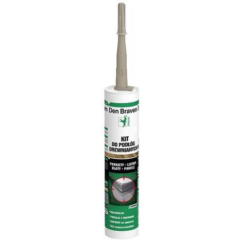 Den Braven Kit Do Podłóg Drewnianych to wysoce plastyczno-elastyczny kit uszczelniający na bazie wodnej dyspersji akrylowej, do wypełniania szczelin w parkietach i podłogach drewnianych podobnego typu