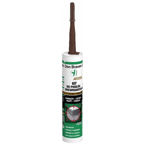 Den Braven Kit Do Podłóg Drewnianych to wysoce plastyczno-elastyczny kit uszczelniający na bazie wodnej dyspersji akrylowej, do wypełniania szczelin w parkietach i podłogach drewnianych podobnego typu
