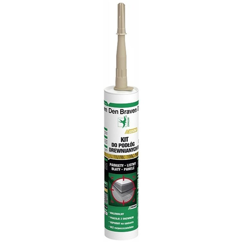 Den Braven Kit Do Podłóg Drewnianych to wysoce plastyczno-elastyczny kit uszczelniający na bazie wodnej dyspersji akrylowej, do wypełniania szczelin w parkietach i podłogach drewnianych podobnego typu
