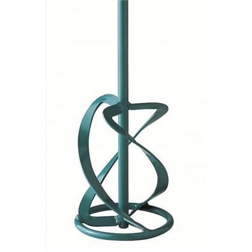 Mieszadło MKN 120 M turkusowe, kształt uformowany w lewą stronę, do materiałów płynnych, zbrojonych włóknami i połączonych z gipsem jak tynki gipsowe, farby, powłoki, zaprawy z włóknami zbrojącymi itp.; Przebieg mieszania od góry do dołu COLLOMIX