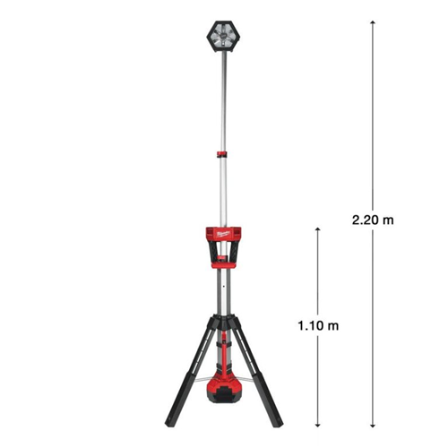 Wysuwany trzonek sięgający od 1,1 m do powyżej 2,2 m, aby oświetlać obszar roboczy od samej góry bez rzucania cieni