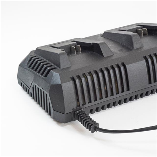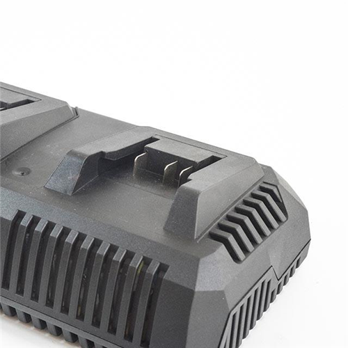 Ładowarka przeznaczona jest do jednoczesnego ładowania dwóch akumulatorów Li-Ion. Z przodu ze wskaźnikami LED stanu naładowania akumulatorów.