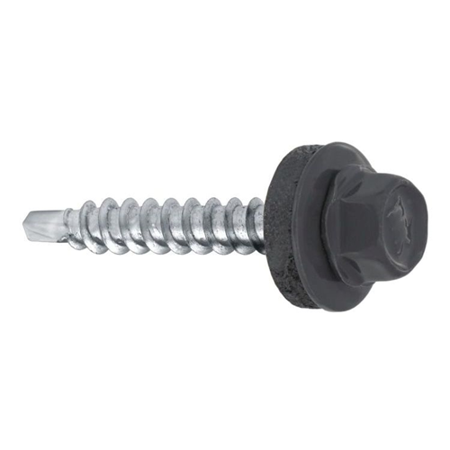 Wkręt farmerski samowiercący z podkładką EPDM do mocowania blach do podłoża drewnianego.