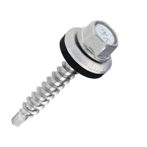 Wkręt farmerski samowiercący z podkładką EPDM do mocowania blach do podłoża drewnianego.