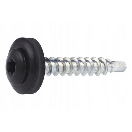 Wkręt samowiercący z łbem walcowym z podkładką EPDM do mocowania blach do podłoża drewnianego