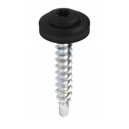 Wkręt samowiercący z łbem walcowym z podkładką EPDM do mocowania blach do podłoża drewnianego