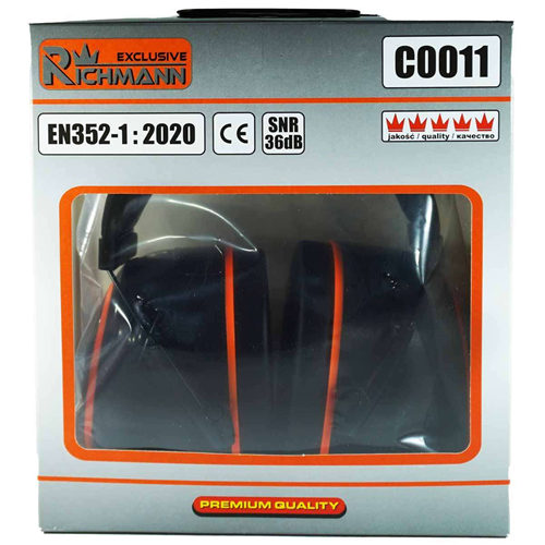 Nauszniki ochronne wygłuszające/przeciwhałasowe, przeznaczone do prac wykonywanych w środowiskach o dużym natężeniu hałasu. Poduszki uszczelniające wykonane z gąbki i PCW, pałąk wykonany jest z tworzywa sztucznego oraz PC, mocowany za pomocą drutu ze stali węglowej, czasza z tworzywa sztucznego. Dopasowane do różnych rozmiarów głowy. Nauszniki spełniają normy EN352-1:2020. Produkt spełnia wymagania dyrektyw Unii Europejskiej (znak CE).