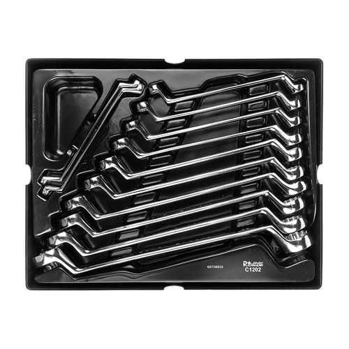 Zestaw 12 kluczy oczkowo-giętych umieszczonych we wkładzie do wózka
