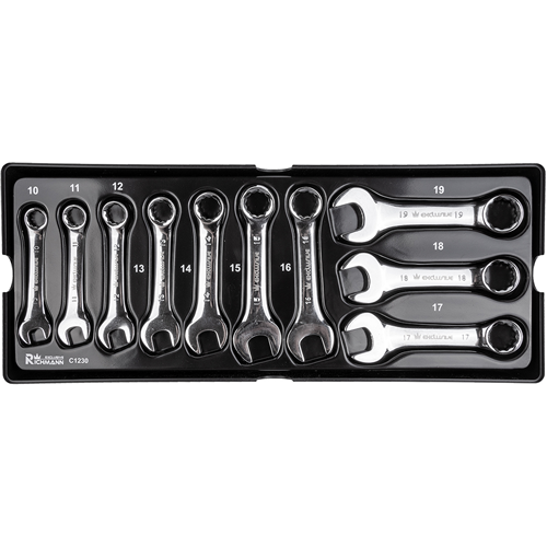 Zestaw 10 sztuk kluczy płasko-oczkowych krótkich umieszczonych we