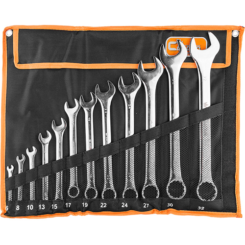 Zestaw 12 sztuk kluczy płasko-oczkowych w zakresie rozmiarów: 6 - 32