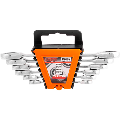 Zestaw 6 szt. kluczy dwustronnych oczkowych z grzechotką w