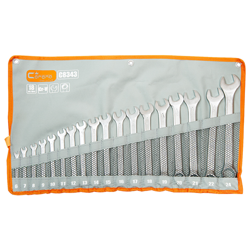 Zestaw 18 szt. kluczy płasko-oczkowych satynowanych w rozmiarach