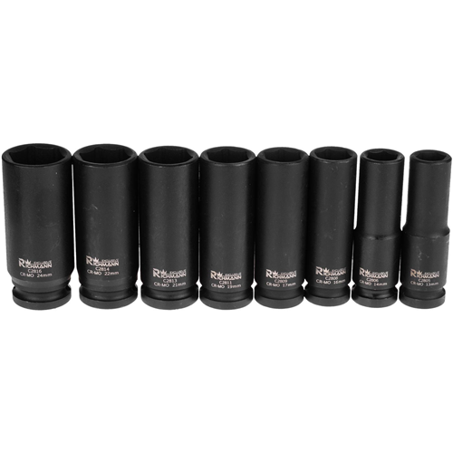 Zestaw 8 sztuk nasadek udarowych sześciokątnych długich ½” w zakresie