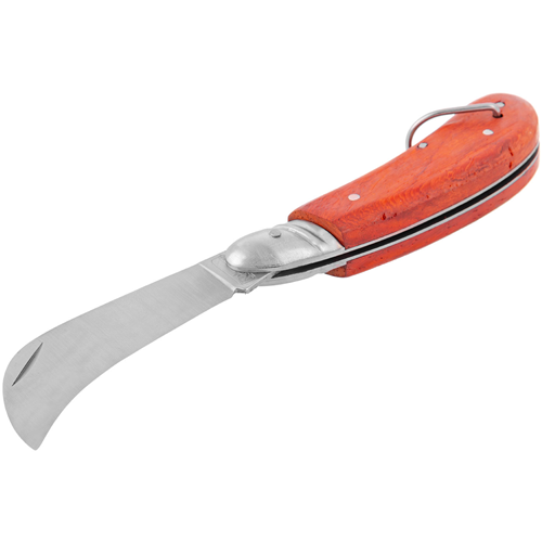dzięki użyciu stali nierdzewnej 440C. Cechy produktu: Zakrzywione ostrze: Ostrze o długości 70 mm, wykonane ze stali nierdzewnej 440C, zapewnia wyjątkową wytrzymałość i ostrość. Rękojeść z drewna: Wysokiej jakości lakierowana rękojeść z drewna zapewnia komfort użytkowania i estetyczny wygląd. Stalowy korpus: Korpus noża połączony z drewnem za pomocą aluminiowych nitów, co zwiększa trwałość konstrukcji. Praktyczne oczko: Nożyk wyposażony w oczko, które umożliwia zawieszenie go lub przyłączenie do karabińczyka na pasku, co ułatwia przechowywanie i transport. Wielofunkcyjność: Idealny do prac monterskich, budowlanych, hydraulicznych, cięcia kabli, przewodów, wyrobów z aluminium i skóry. Sprawdzi się także na grzybobraniu, wędkowaniu i wyprawach turystycznych. Dane techniczne: Typ: Nożyk monterski składany Długość ostrza: 70 mm Długość rękojeści: 115 mm Grubość: 20 mm Stal: 440C Wymiary opakowania: 165 x 140 x 30 mm Waga: 0.116 kg Stan: Produkt fabrycznie nowy, oryginalnie zapakowany CC Nóż monterski z zakrzywionym ostrzem 185mm to niezawodne narzędzie o wszechstronnym zastosowaniu. Dzięki solidnej konstrukcji i wysokiej jakości materiałom, zapewnia długotrwałą wytrzymałość i wygodę użytkowania, co czyni go idealnym wyborem dla profesjonalistów i hobbystów. |