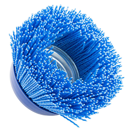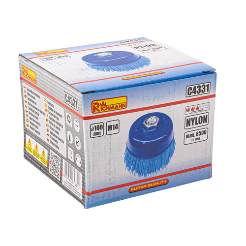 Szczotka doczołowa nylonowa o średnicy 100 mm do szlifierki kątowej z mocowaniem M14.