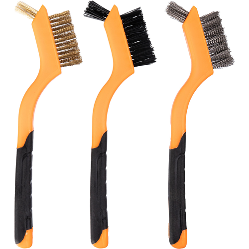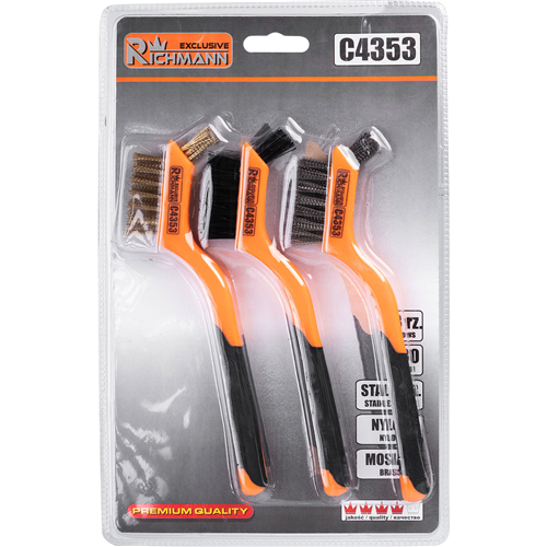 Zestaw 3 sztuk mini szczotek drucianych 3-rzędowych o długości 180 mm.