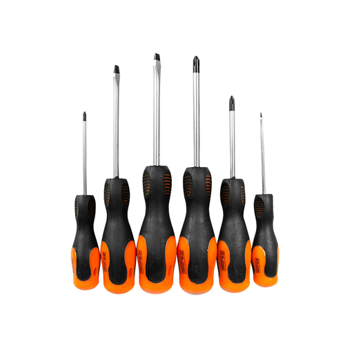Zestaw zawiera 6 sztuk wkrętaków płaskich oraz krzyżakowych