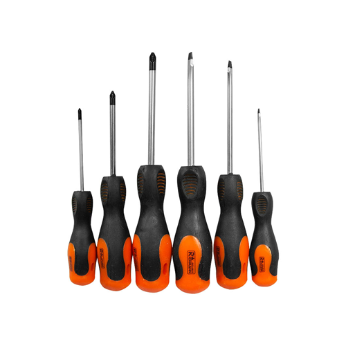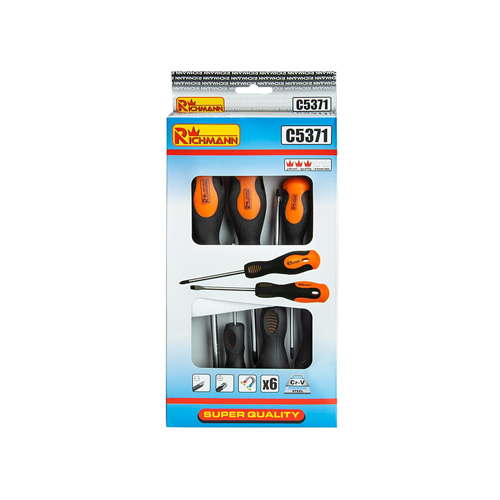Zestaw zawiera 6 sztuk wkrętaków płaskich oraz krzyżakowych