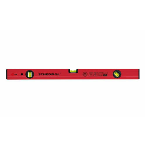 Wskazanie: poziom / pion / 45 . Dokładność wskazań: 0,029 = 0,5 mm/1 m , 3 wstrząsoodporne, profesjonalnie wklejane libelle . Zaślepione odpornym na wstrząsy tworzywem sztucznym . Sztywny korpus pokryty odporną na ścieranie farbą proszkową