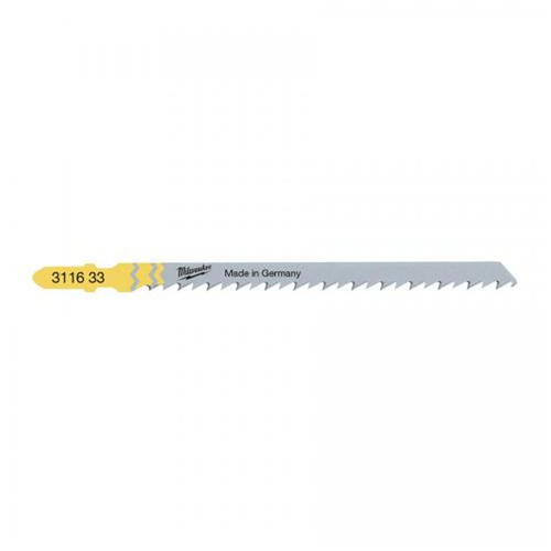 Brzeszczot Milwaukee 105 x 4 mm T 301 DL do wyrzynarek z przeznaczeniem do cięcia drewna i tworzyw sztucznych.