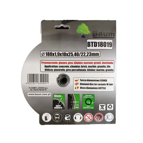 BAUM Tarcza diamentowa PEŁNA CIENKA 180x1,9mm