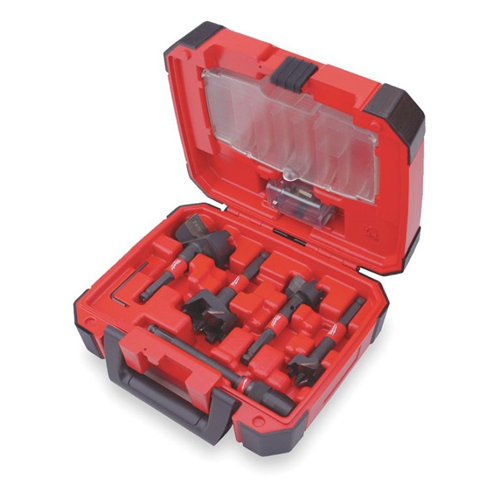Zawiera : 4 wiertła samoposuwne SWITCHBLADE: ø 35 / 38 / 54 / 65 mm, przedłużka QUIK-LOK o dł. 140 mm, 4 x zapasowe ostrza SWITCHBLADE (1 dla każdej średnicy), 4 x śruby pociągowe, 4 x śrube ustalające, 1 x klucz imbusowy.