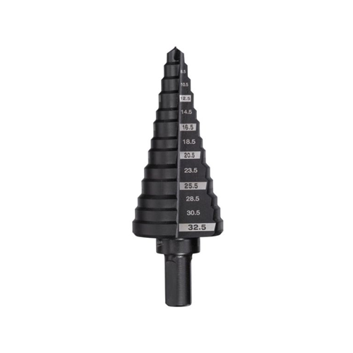 Każdy stopień tak zaszlifowany, aby wiertło automatycznie wygładzało krawędzie podczas wiercenia.