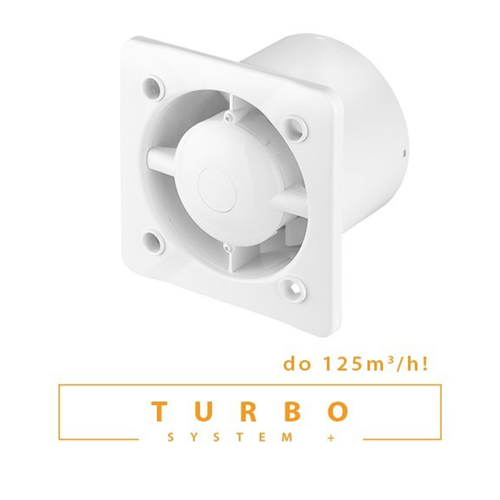 Model KWT100, czyli Korpus Wentylatora Turbo fi 100. Korpusy serii Turbo charakteryzują się zwiększona wydajnością wymiany powietrza do 125 m3/h. Wentylatory są również wyposazone w silniki z łożyskami kulkowymi. Dostepne są równiez korpusy o średnicy fi 125 - KWT125.