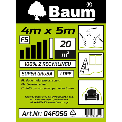 Folia ochronna malarska SUPER GRUBA F5 4x5m