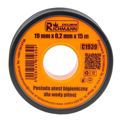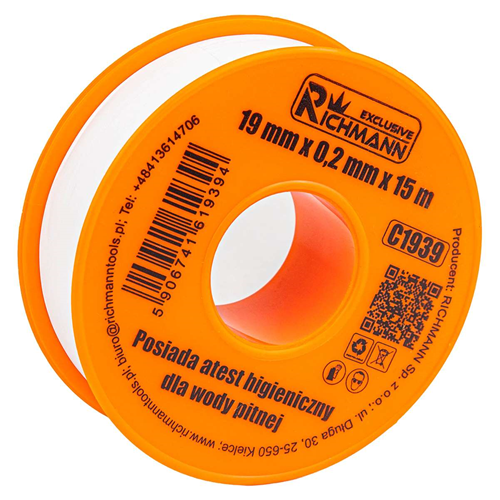 Taśma teflonowa z atestem 19x0,2mm 15m