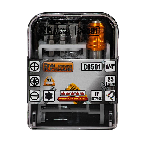 Zestaw 17 sztuk bitów 2 5mm PH, PZ, PŁASKIE, TORX + uchwyt