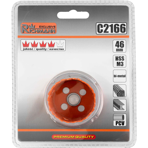 BI-METALOWA HSS M3 o średnicy zewnętrznej 46 mm (1 13/16”).